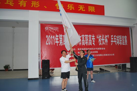 最后,主持人宣布下一届南京市高职高专“校长杯”乒乓球联谊赛由南京工业职业技术学院承办。南工院尤建国书记接过会旗,并欢迎大家明年相聚南工院!此届“校长杯”乒乓球比赛在我院成功举办,达到了增进了各高职院校之间的友谊,加强了各校之间相互的沟通和了解的目的,全面展示了学院“文明、团结、勤奋、进取”的风貌。转载自南京化工职业技术学院新闻